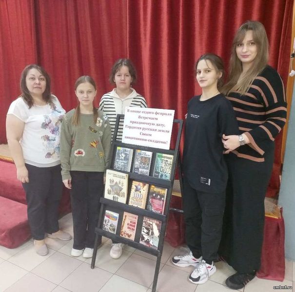 В завершение встречи библиотекарь провела обзор литературы об отваге и мужестве сильной половины человечества, представленной на книжной выставке «В конце седого февраля встречаем праздничную дату. Гордится русская земля своим защитником - солдатом».