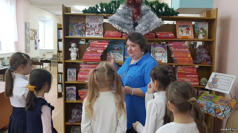 Ребятишки собрались у книжной выставки «Новогодний шарик», чтобы вспомнить любимые зимние истории.