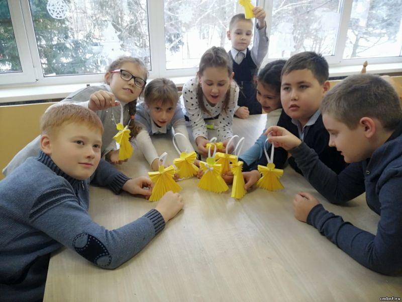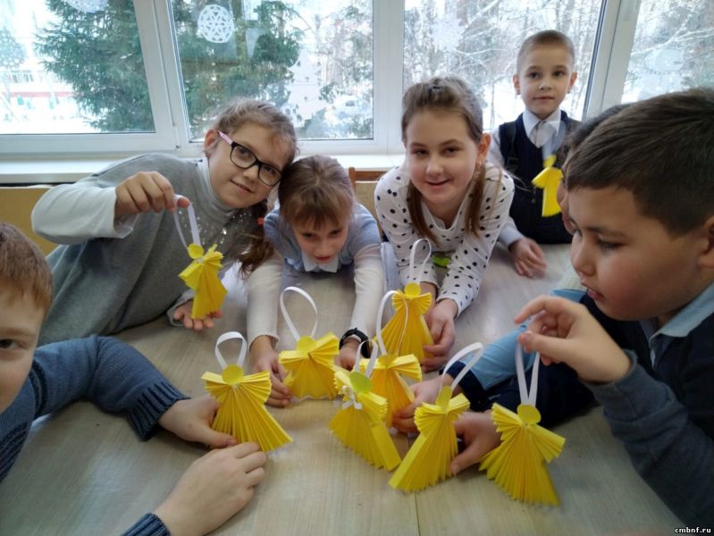 В начале для разминки была предложена зимняя викторина, где ребята наперебой отгадывали загадки и отвечали на вопросы. Не менее интересным стал конкурс «Собери слово». Сделали поделку из цветной бумаги «Ангелок» в технике оригами.