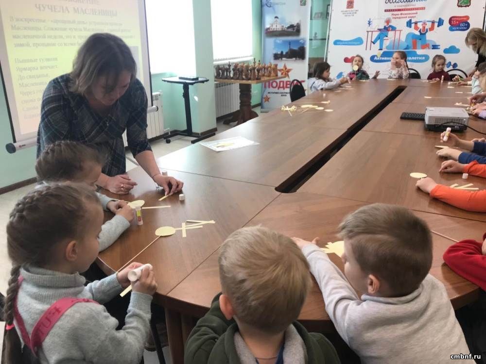 Ребята с интересом рассматривали стеллажи с книгами, задавали вопросы. Затем поговорили о народных весенних праздниках, дети дружно делились своими впечатлениями о Масленице, о том, что масленичные блины похожи на солнышко, и все вместе решили сделать символ весны своими руками.